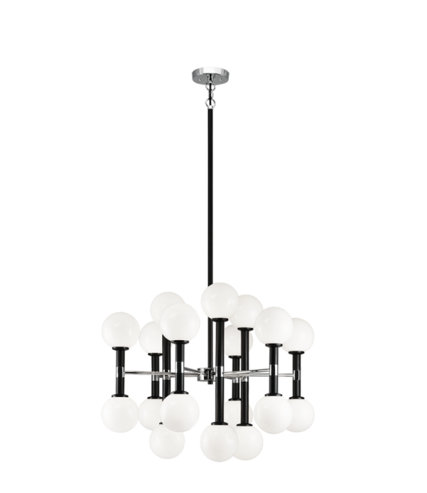 The abundant radiance of Stellar will give any room a bold, distinctive look. Inspired by the Mid-Century lamp post, this piece will stand out in any room. Available finishes: Aged Gold Brass with Matte White accents or Black with Chrome accents. A simple rod design completed with 4.3" diameter Clear or Opal White Glass globes.