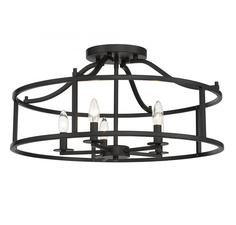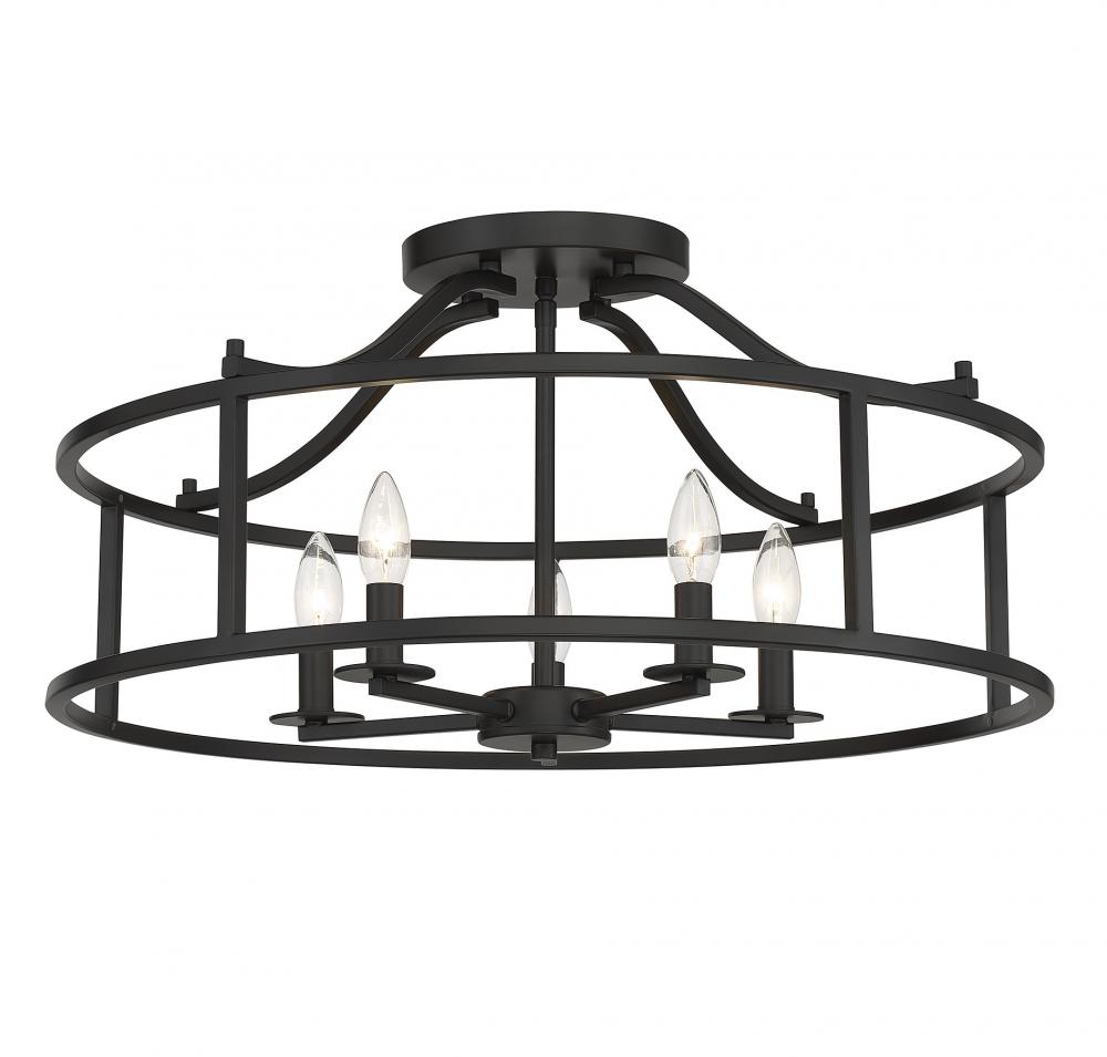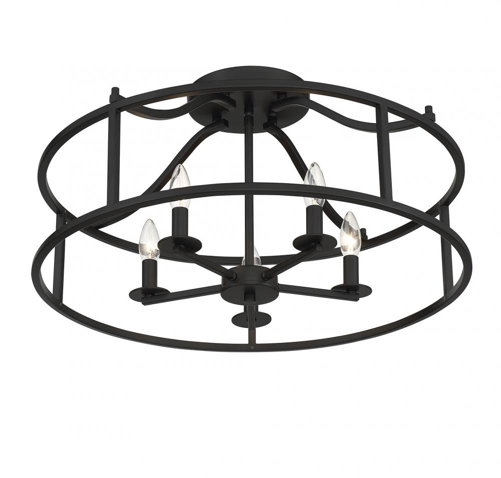 The sizable Savoy House Stockton 5-light ceiling light is a great way to boost the illumination and style throughout the home. It has a sleek, drum-shaped open shade finished in matte black that lets the lights within shine bright. Stockton is 12" in height and 24" in width. It uses five candelabra size bulbs of up to 60 watts per bulb.
