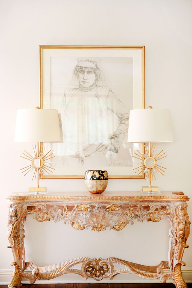 Sun King Buffet Table Lamp in Distressed Gold and Crystal