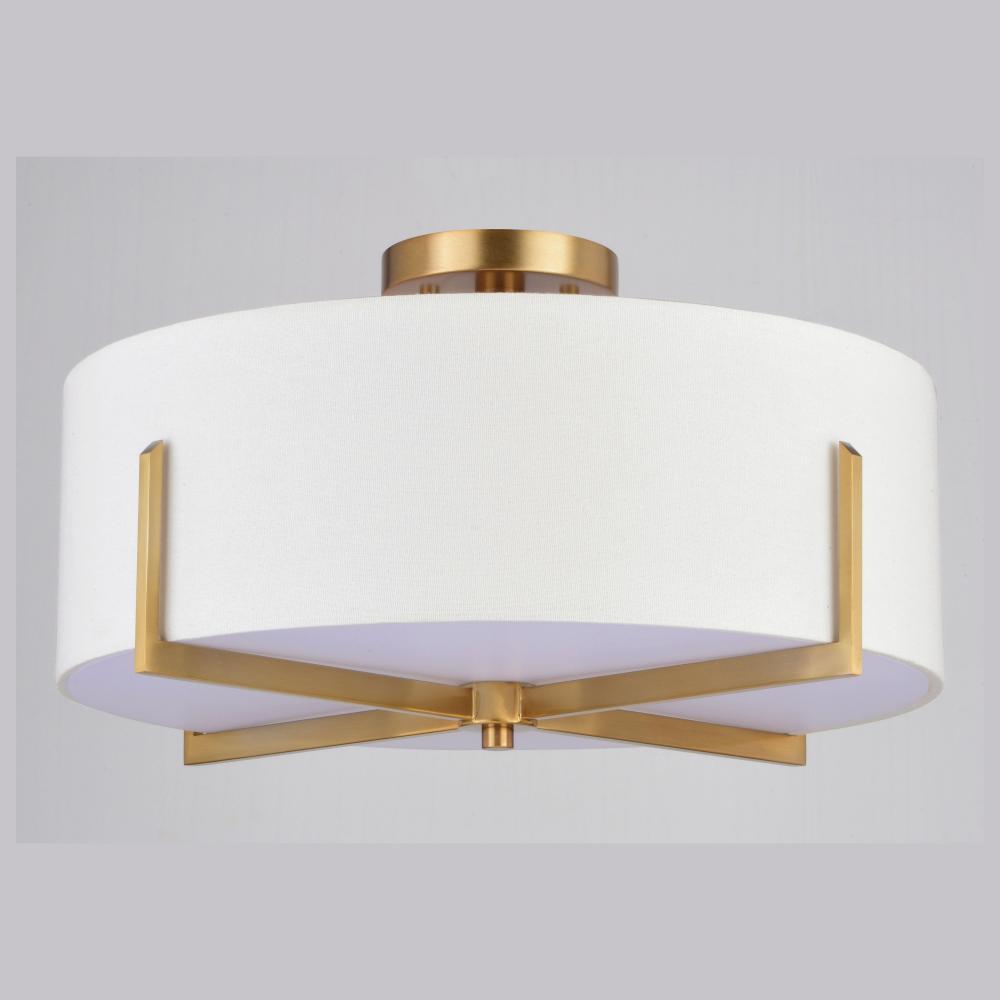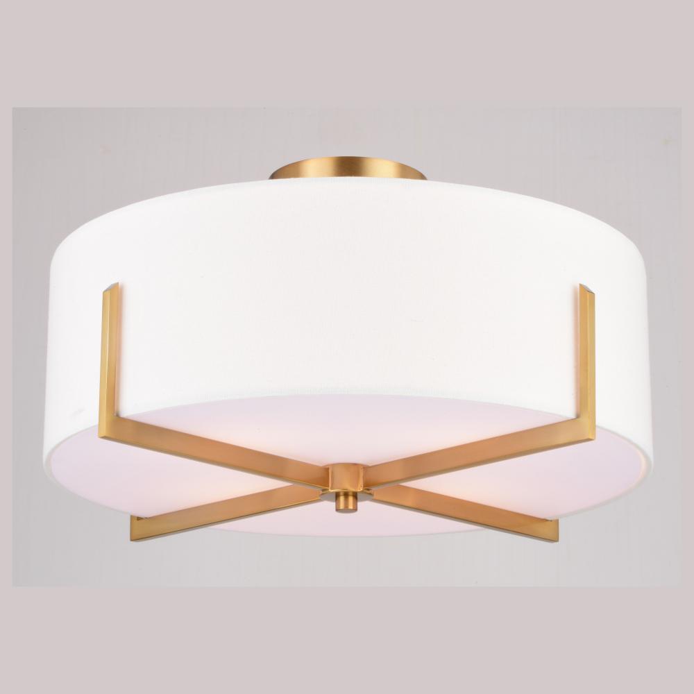 The Surrey collection combines a natural brass frame with a crisp white linen drum shade creating an elegant Mid-century modern ceiling light for today's on-trend spaces. A white diffusor softens the glow below. Add this semi flush mount fixture to any hallway, bedroom, or living space to complete your look.