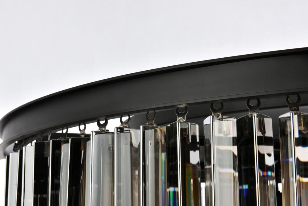 Timeless splendor and modern refinement are brought together in flush-mount Sydney fixtures. Dazzling in dining rooms, staircases, or hallways, the Sydney collection flaunts stunning tiers of royal-cut crystals in clear, golden teak, or Silver shade. A circular Matte Black or polished-nickel finished steel frame adds understated charm to this stunning flush-mount lamp.