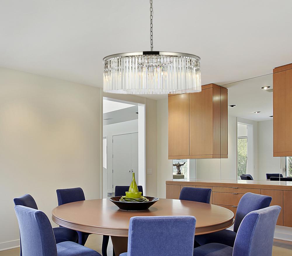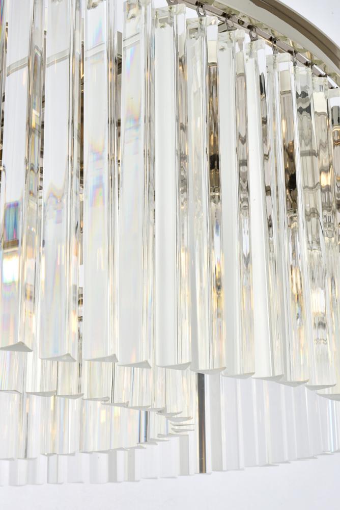 Bring the splendor of the ballroom into your home with a sparkling Sydney fixture. Stunning in foyers, dining rooms, or stairwells, the Sydney collection brings to mind the glamour of the Roaring Twenties. Features glimmering tiers of royal-cut clear, golden-teak, or Silver-shade crystals. In mocha-brown or polished-nickel finishes, this sturdy, yet delicate, chandelier will be the perfect centerpiece for any décor.