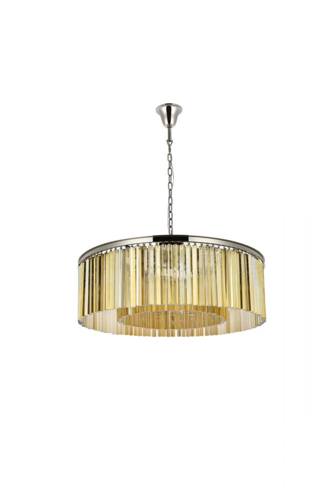 Bring the splendor of the ballroom into your home with a sparkling Sydney fixture. Stunning in foyers, dining rooms, or stairwells, the Sydney collection brings to mind the glamour of the Roaring Twenties. Features glimmering tiers of royal-cut clear, golden-teak, or Silver-shade crystals. In mocha-brown or polished-nickel finishes, this sturdy, yet delicate, chandelier will be the perfect centerpiece for any décor.
