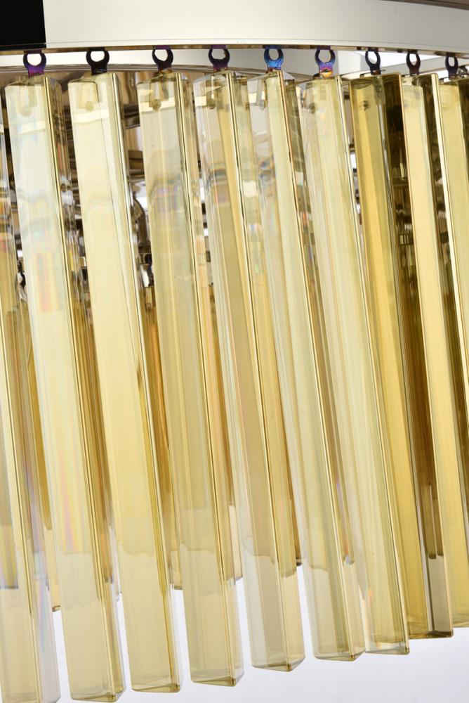 Timeless splendor and modern refinement are brought together in flush-mount Sydney fixtures. Dazzling in dining rooms, staircases, or hallways, the Sydney collection flaunts stunning tiers of royal-cut crystals in clear, golden teak, or Silver shade. A circular mocha-brown or polished-nickel finished steel frame adds understated charm to this stunning flush-mount lamp.