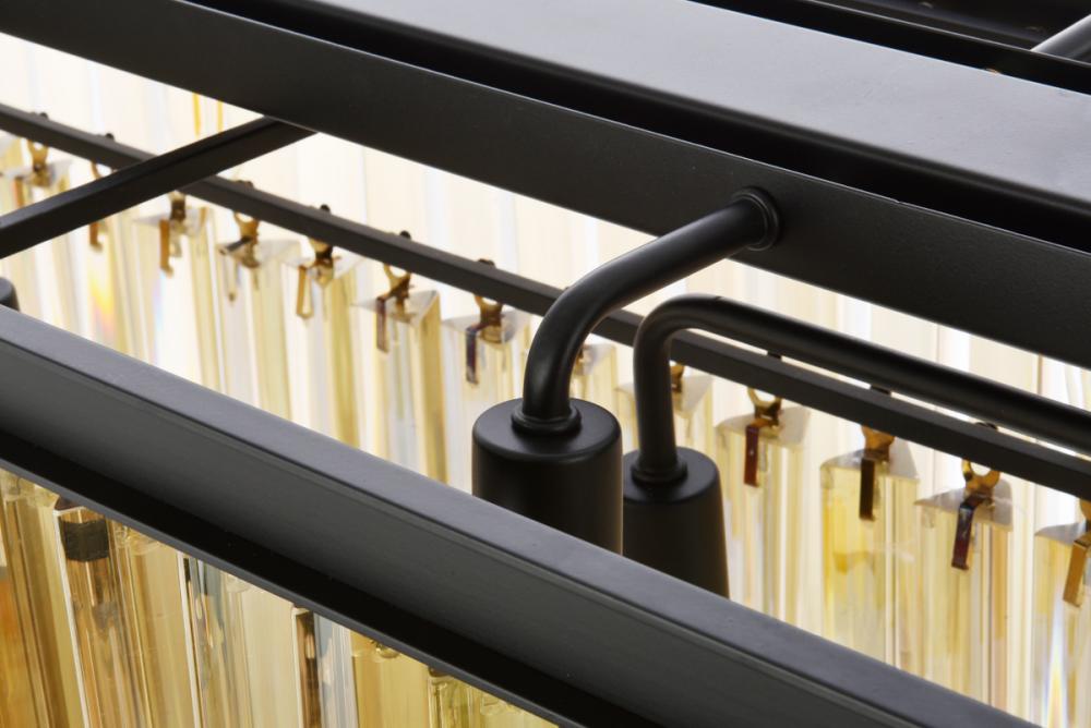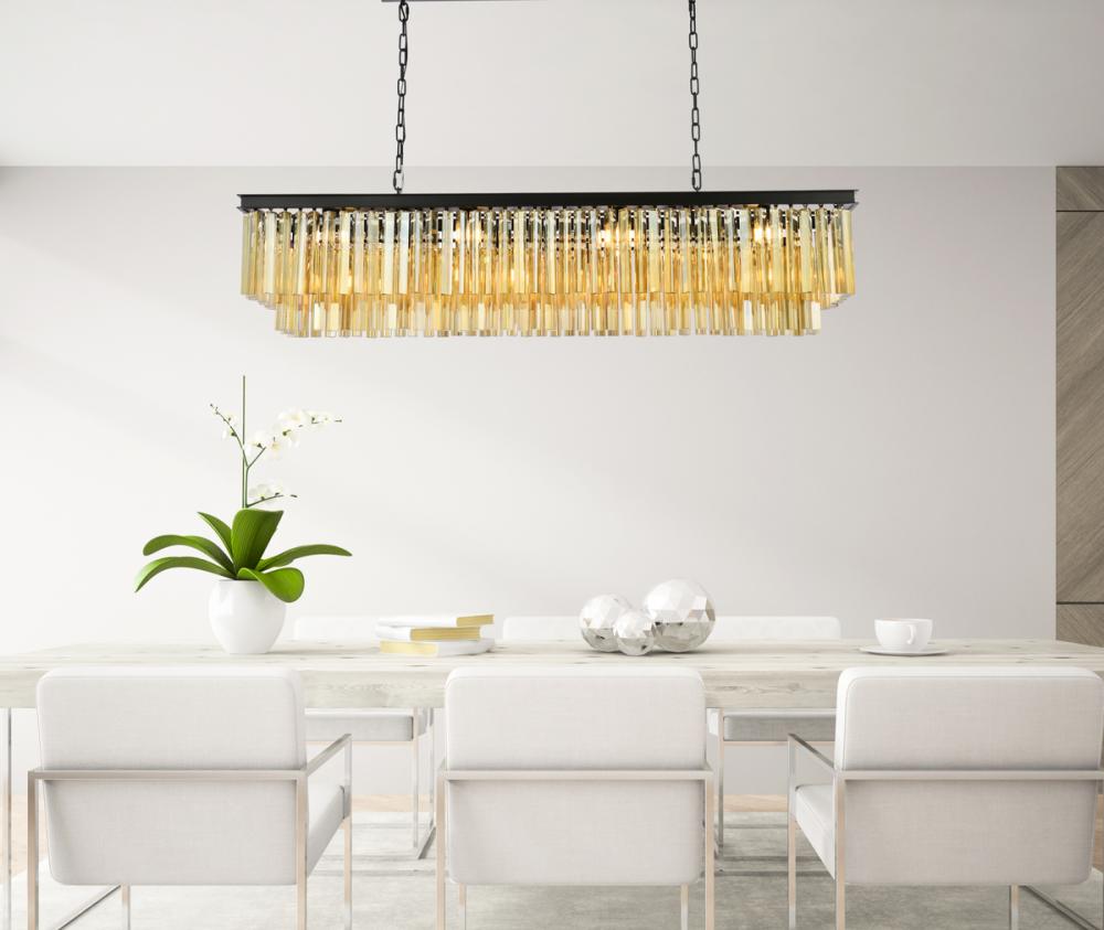 Lamp features a length of 60 inches, a width of 14 inches, a height of 18 inches; requires 12 candelabra lights