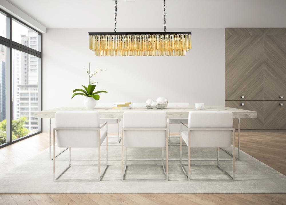 Bring the splendor of the ballroom into your home with a sparkling Sydney fixture. Stunning in foyers, dining rooms, or stairwells, the Sydney collection brings to mind the glamour of the Roaring Twenties. Features glimmering tiers of royal-cut clear, golden-teak, or Silver-shade crystals. In Matte Black or polished-nickel finishes, this sturdy, yet delicate, pendant lamp will be the perfect centerpiece for any décor.
