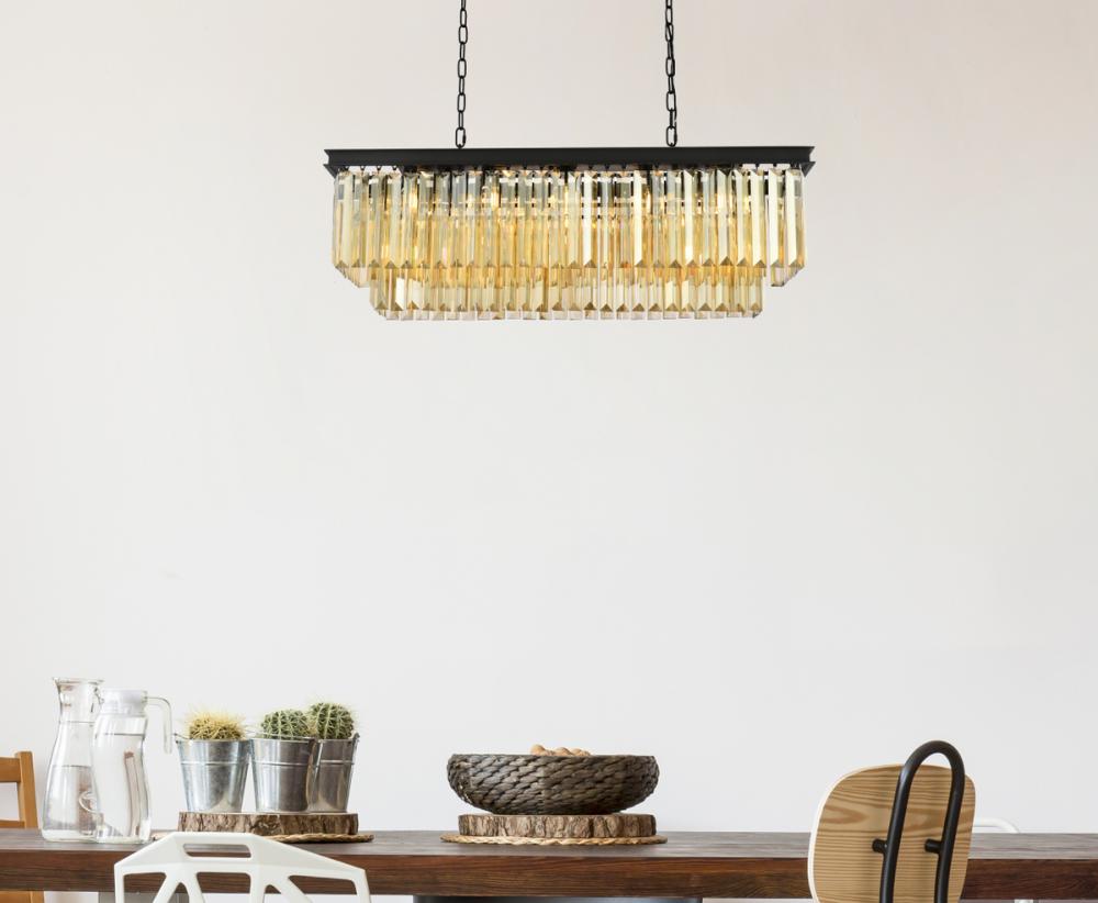 Bring the splendor of the ballroom into your home with a sparkling Sydney fixture. Stunning in foyers, dining rooms, or stairwells, the Sydney collection brings to mind the glamour of the Roaring Twenties. Features glimmering tiers of royal-cut clear, golden-teak, or Silver-shade crystals. In Matte Black or polished-nickel finishes, this sturdy, yet delicate, pendant lamp will be the perfect centerpiece for any décor.