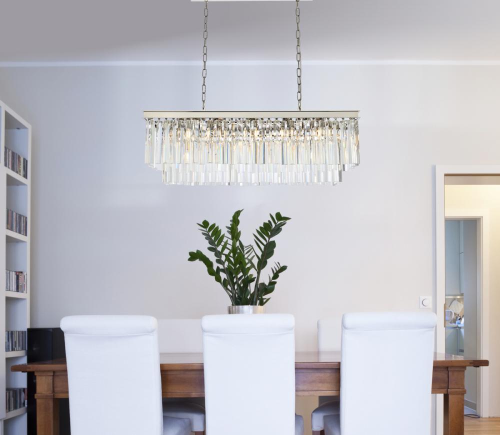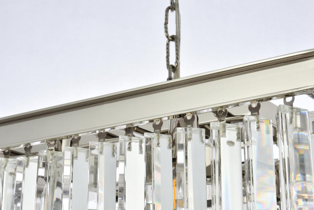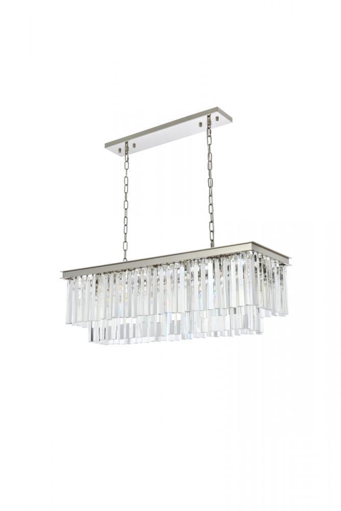 Bring the splendor of the ballroom into your home with a sparkling Sydney fixture. Stunning in foyers, dining rooms, or stairwells, the Sydney collection brings to mind the glamour of the Roaring Twenties. Features glimmering tiers of royal-cut clear, golden-teak, or Silver-shade crystals. In mocha-brown or polished-nickel finishes, this sturdy, yet delicate, pendant lamp will be the perfect centerpiece for any décor.