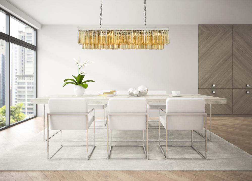 Bring the splendor of the ballroom into your home with a sparkling Sydney fixture. Stunning in foyers, dining rooms, or stairwells, the Sydney collection brings to mind the glamour of the Roaring Twenties. Features glimmering tiers of royal-cut clear, golden-teak, or Silver-shade crystals. In mocha-brown or polished-nickel finishes, this sturdy, yet delicate, pendant lamp will be the perfect centerpiece for any décor.