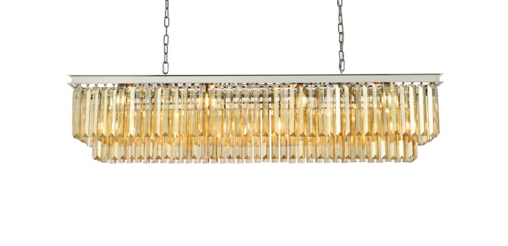 Lamp features a length of 60 inches, a width of 14 inches, a height of 18 inches; requires 12 candelabra lights