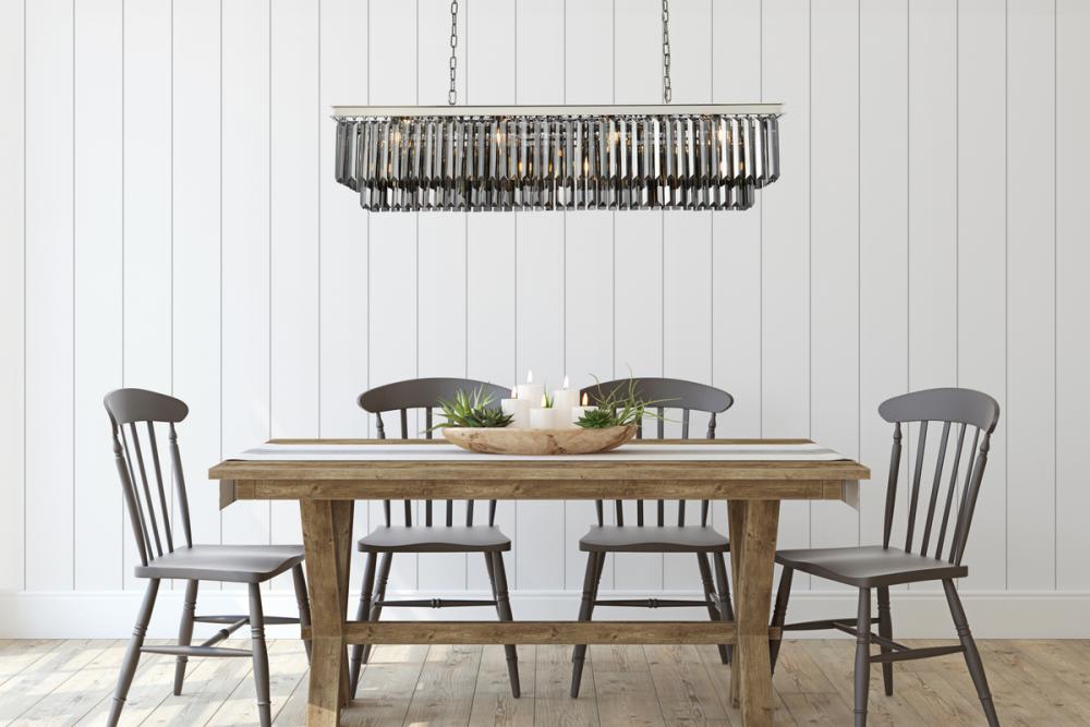 Lamp features a length of 60 inches, a width of 14 inches, a height of 18 inches; requires 12 candelabra lights