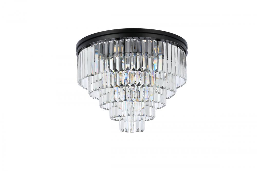 Sydney 17 light Matte Black Flush Mount Clear Royal Cut Crystal