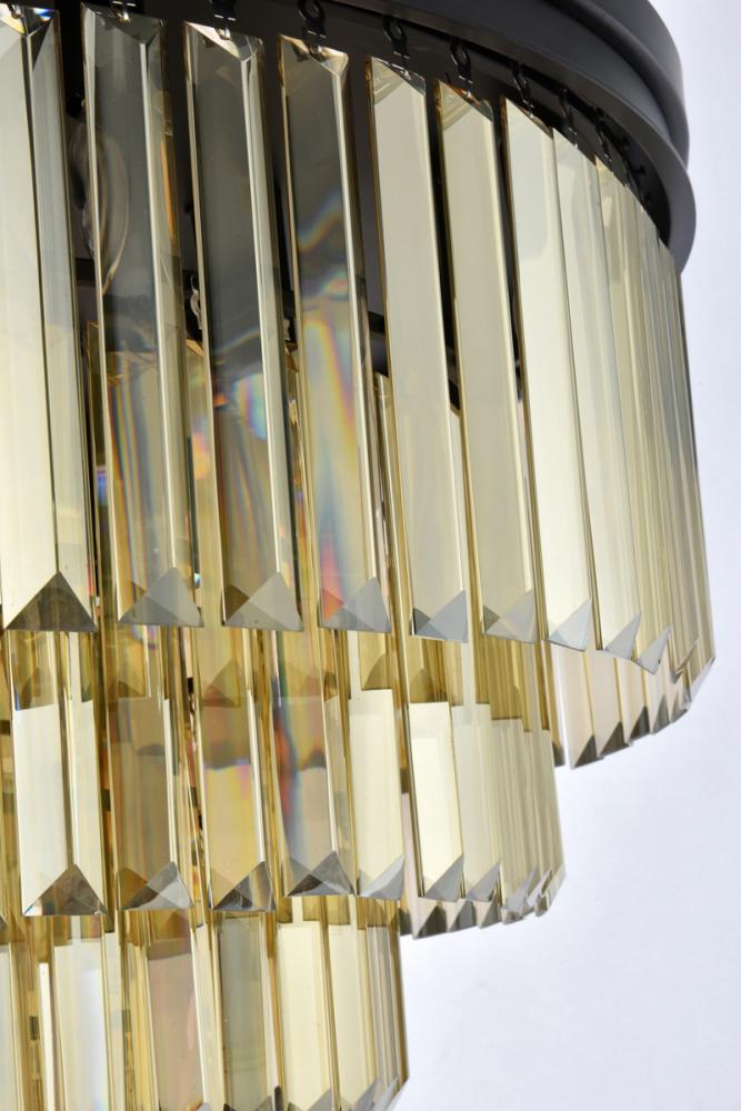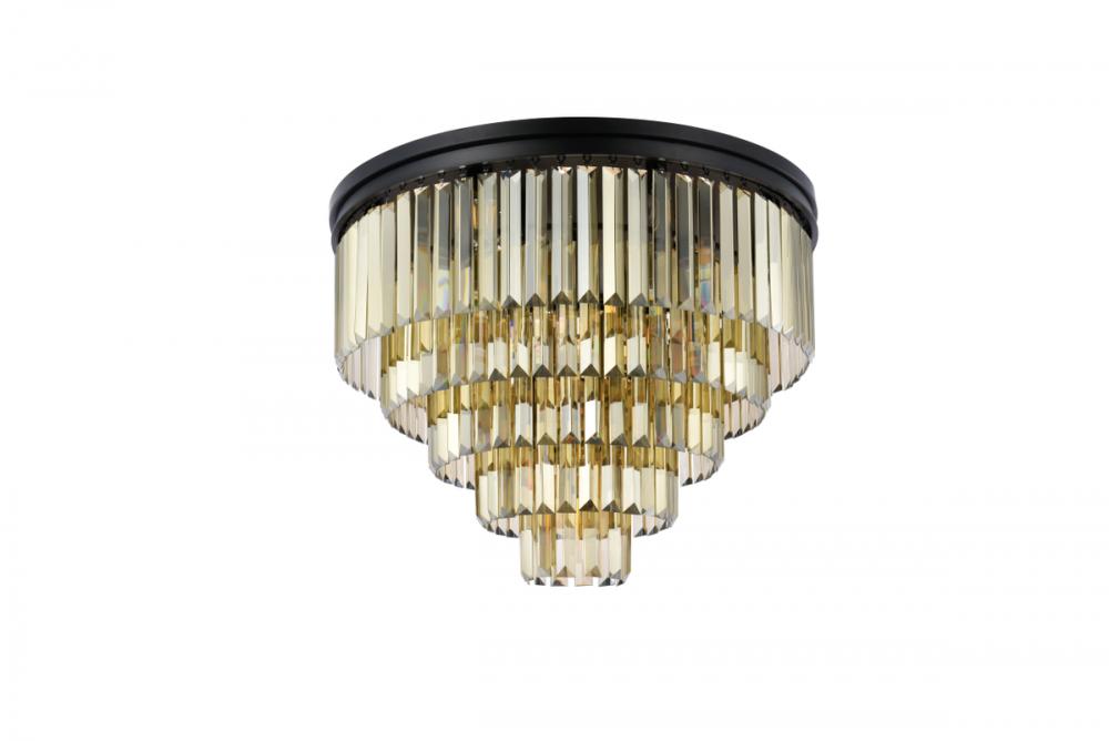 Sydney 17 light Matte Black Flush Mount Golden Teak (Smoky) Royal Cut Crystal