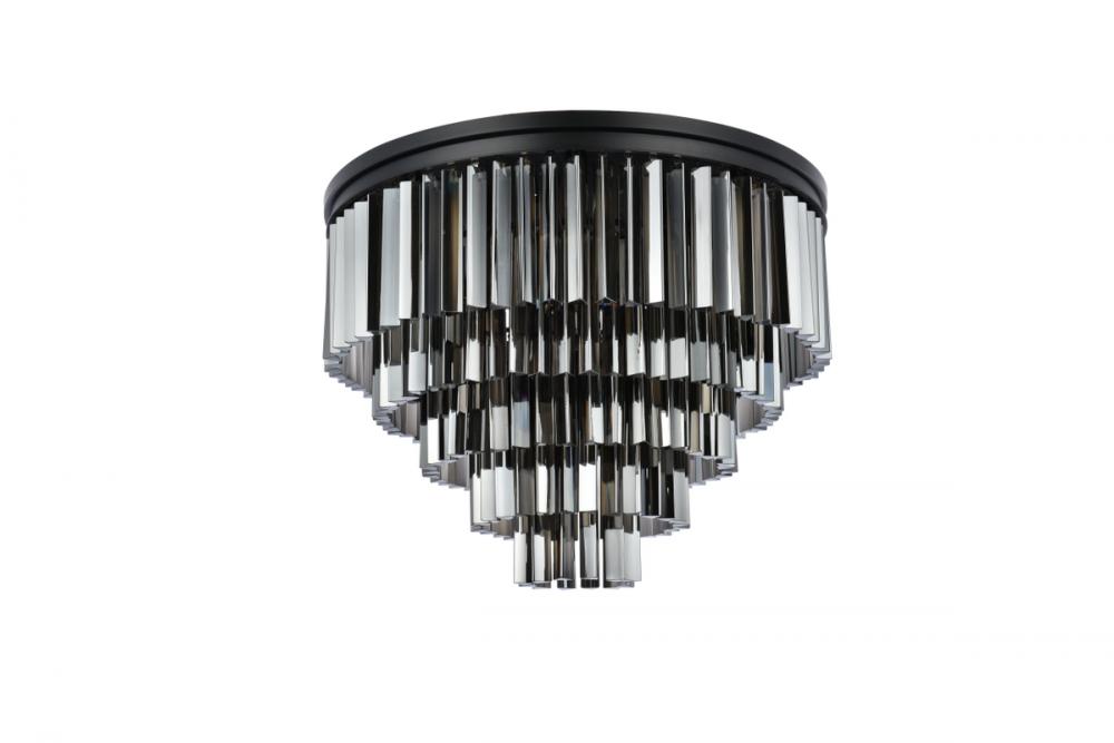 Sydney 17 light Matte Black Flush Mount Silver Shade (Grey) Royal Cut Crystal
