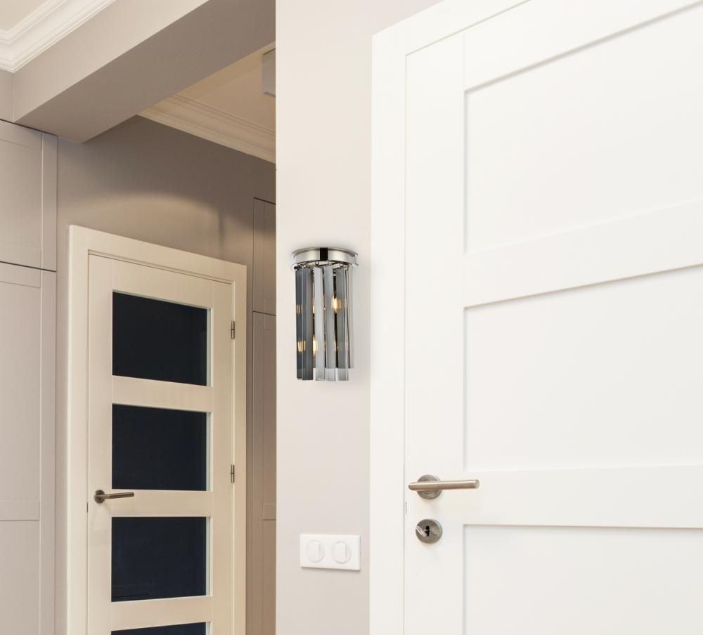 Classical charm meets modern elegance with the Sydney wall light collection. Stunning in dining rooms, hallways, or living rooms, the Sydney collection shines with a fringe of sparkling, royal-cut clear, golden teak, or Silver shade crystals. With a steel backplate in a mocha-brown or polished-nickel finish, this delicate wall sconce will add glamour to every nook and cranny.