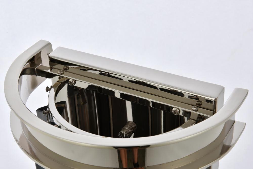 Semicircular steel frame and backplate with polished-nickel finish