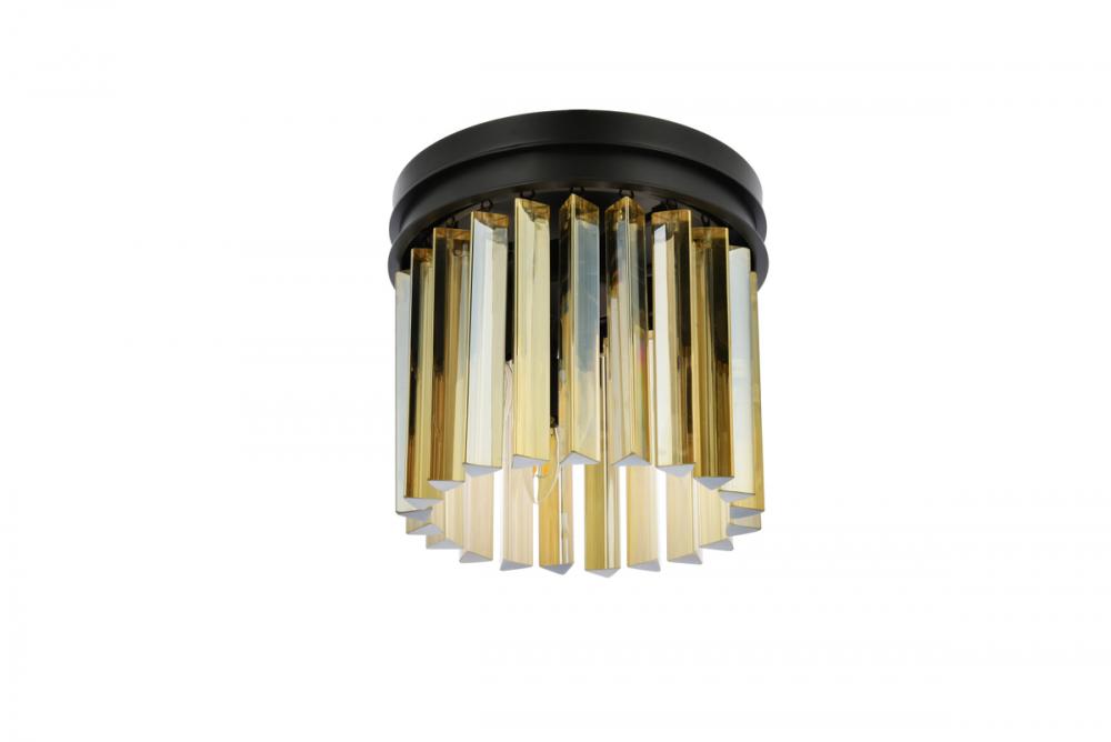 Sydney 3 light Matte Black Flush Mount Golden Teak (Smoky) Royal Cut Crystal