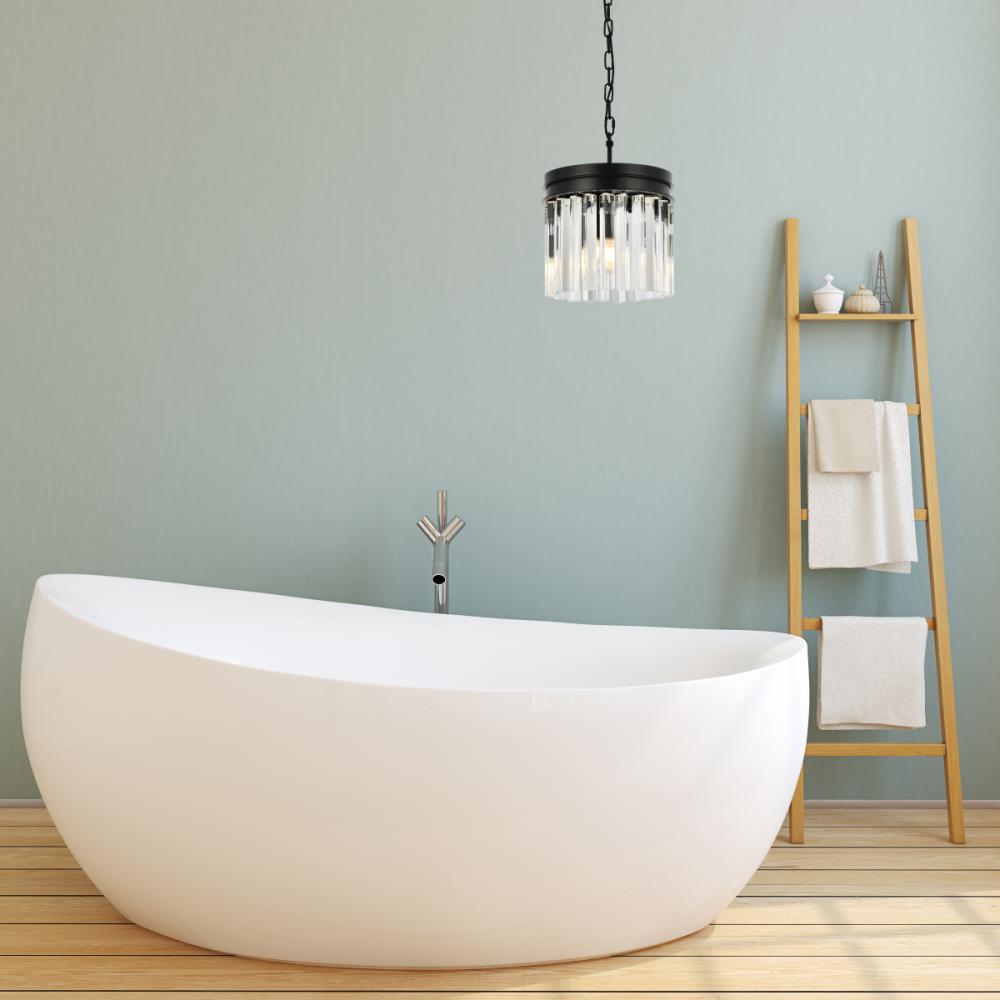 Bring the splendor of the ballroom into your home with a sparkling Sydney fixture. Stunning in foyers, dining rooms, or stairwells, the Sydney collection brings to mind the glamour of the Roaring Twenties. Features glimmering tiers of royal-cut clear, golden-teak, or Silver-shade crystals. In Matte Black or polished-nickel finishes, this sturdy, yet delicate, pendant lamp will be the perfect centerpiece for any décor.