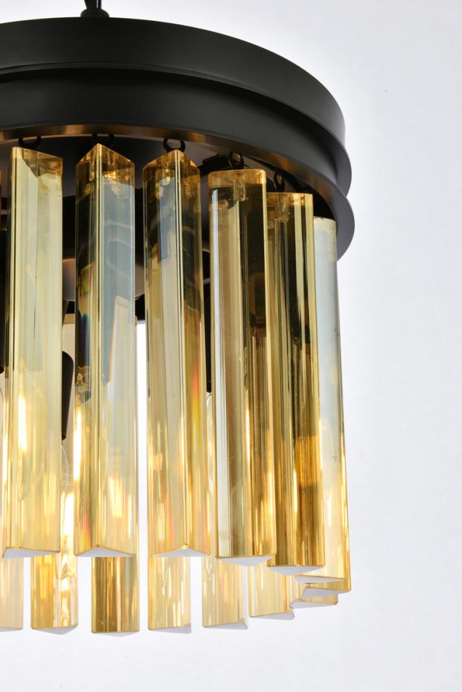 Sydney 3 light Matte Black Pendant Golden Teak (Smoky) Royal Cut Crystal