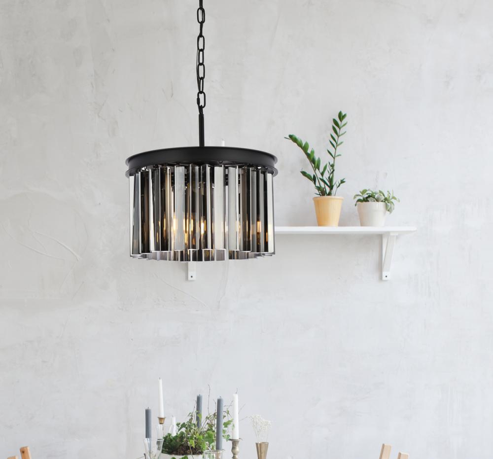 Bring the splendor of the ballroom into your home with a sparkling Sydney fixture. Stunning in foyers, dining rooms, or stairwells, the Sydney collection brings to mind the glamour of the Roaring Twenties. Features glimmering tiers of royal-cut clear, golden-teak, or Silver-shade crystals. In Matte Black or polished-nickel finishes, this sturdy, yet delicate, pendant lamp will be the perfect centerpiece for any décor.
