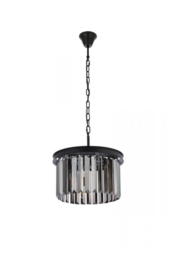 Sydney 3 light Matte Black Pendant Silver Shade (Grey) Royal Cut Crystal