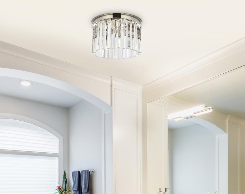 Timeless splendor and modern refinement are brought together in flush-mount Sydney fixtures. Dazzling in dining rooms, staircases, or hallways, the Sydney collection flaunts stunning tiers of royal-cut crystals in clear, golden teak, or Silver shade. A circular mocha-brown or polished-nickel finished steel frame adds understated charm to this stunning flush-mount lamp.