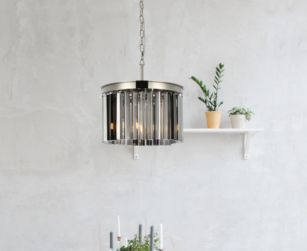 Sydney 3 light polished nickel Pendant Silver Shade (Grey) Royal Cut Crystal