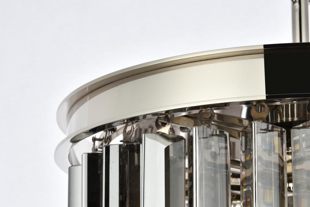 Bring the splendor of the ballroom into your home with a sparkling Sydney fixture. Stunning in foyers, dining rooms, or stairwells, the Sydney collection brings to mind the glamour of the Roaring Twenties. Features glimmering tiers of royal-cut clear, golden-teak, or Silver-shade crystals. In mocha-brown or polished-nickel finishes, this sturdy, yet delicate, pendant lamp will be the perfect centerpiece for any décor.