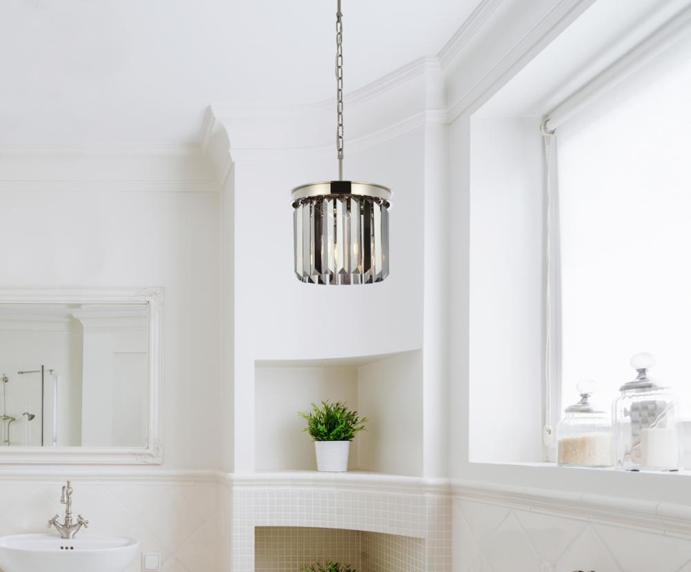 Sydney 3 light polished nickel Pendant Silver Shade (Grey) Royal Cut Crystal