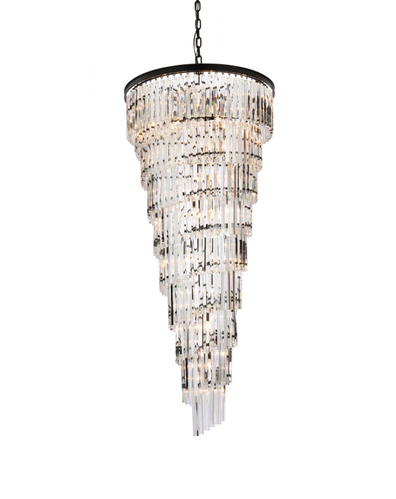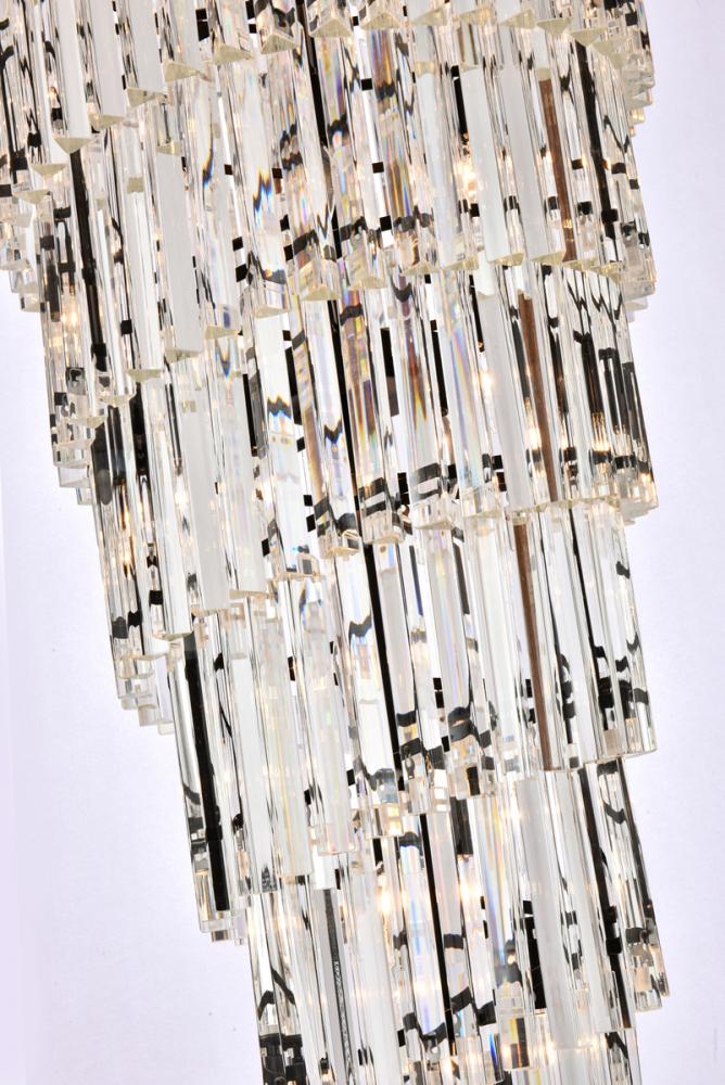 The chandelier features 3 tiers of triangular slender crystal rods, providing a stunning cascade of shimmering light and creating a sense of opulence.