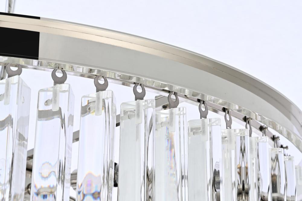 Illuminate your space with the mesmerizing beauty of our modern glam crystal lighting. This exquisite fixture features long, slender shimmering triangular crystal rods suspended from a durable iron frame. with multiple layers of crystals, it creates a captivating cascade of light that will transform your dining table, living room, or office into a dazzling haven. The modern glam design blends seamlessly with various interior styles, while the high-quality materials ensure durability and long-lasting brilliance. Elevate your decor with this stunning crystal lighting and immerse yourself in a world of opulence and sophistication.
