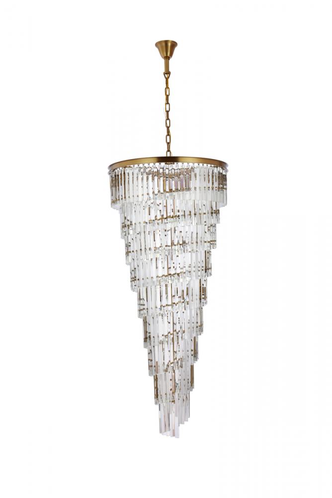 The chandelier features 3 tiers of triangular slender crystal rods, providing a stunning cascade of shimmering light and creating a sense of opulence.