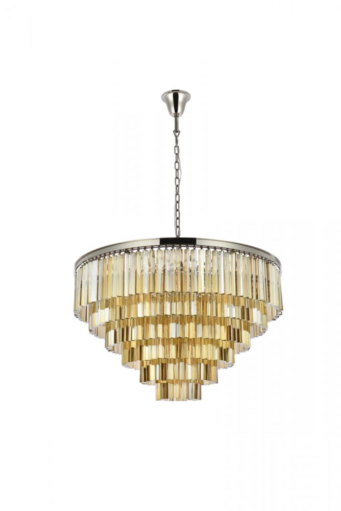 Sydney 33 light polished nickel Chandelier Golden Teak (Smoky) Royal Cut Crystal