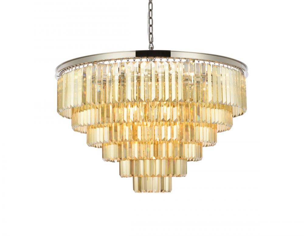 Sydney 33 light polished nickel Chandelier Golden Teak (Smoky) Royal Cut Crystal