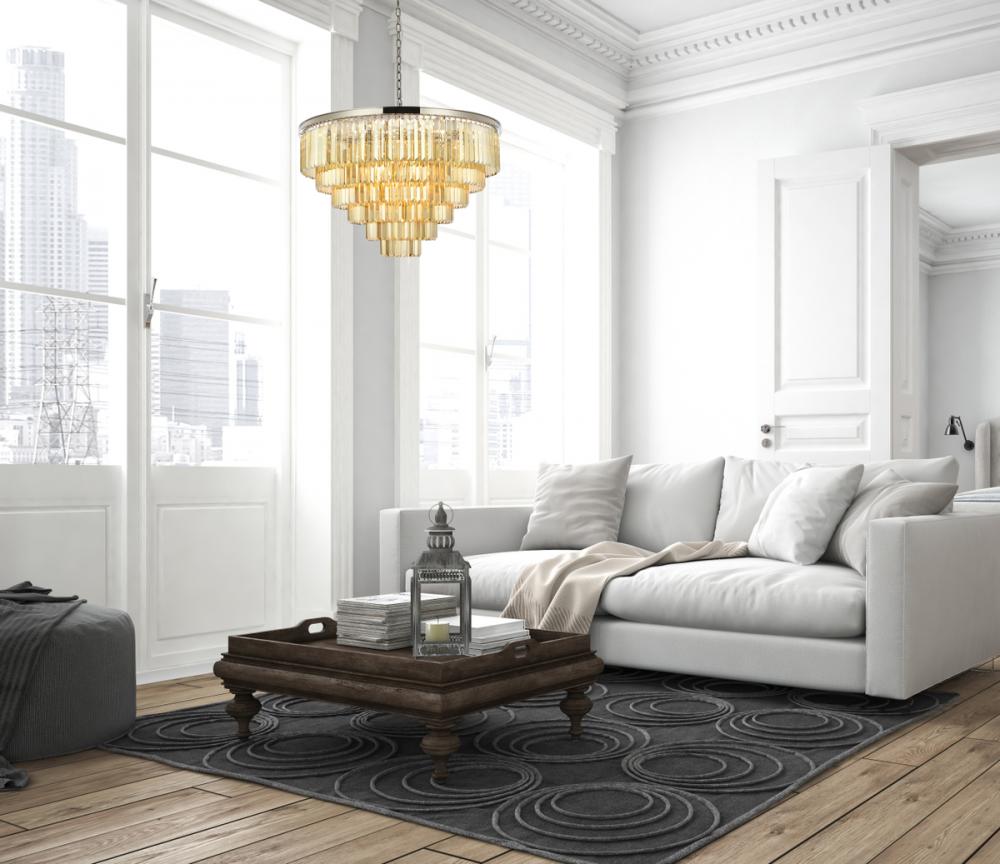 Bring the splendor of the ballroom into your home with a sparkling Sydney fixture. Stunning in foyers, dining rooms, or stairwells, the Sydney collection brings to mind the glamour of the Roaring Twenties. Features glimmering tiers of royal-cut clear, golden-teak, or Silver-shade crystals. In mocha-brown or polished-nickel finishes, this sturdy, yet delicate, chandelier will be the perfect centerpiece for any décor.