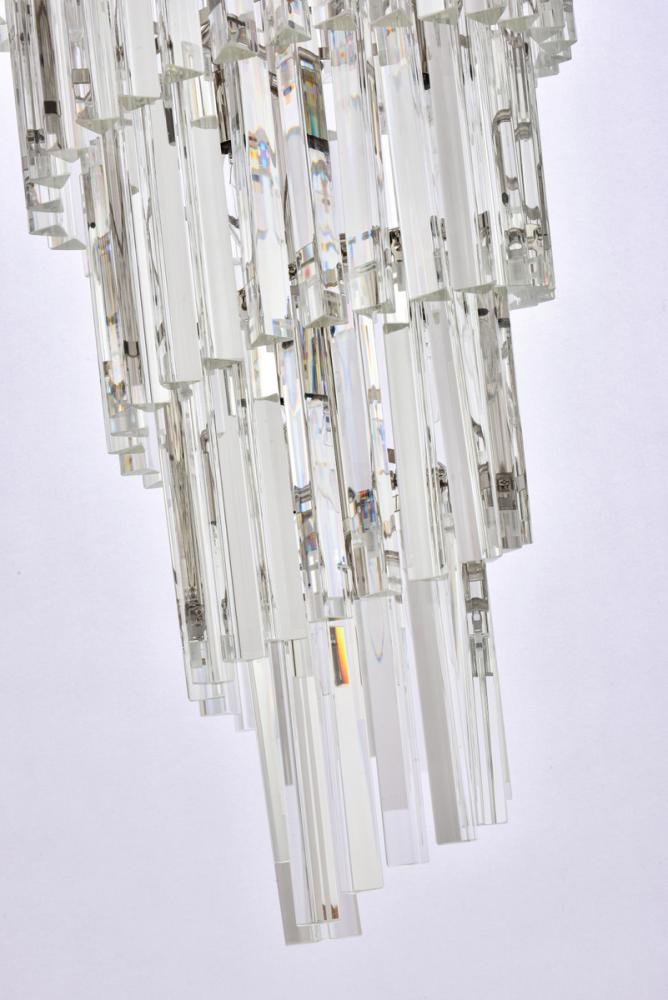 The chandelier features 10 tiers of triangular slender crystal rods, providing a stunning cascade of shimmering light and creating a sense of opulence.