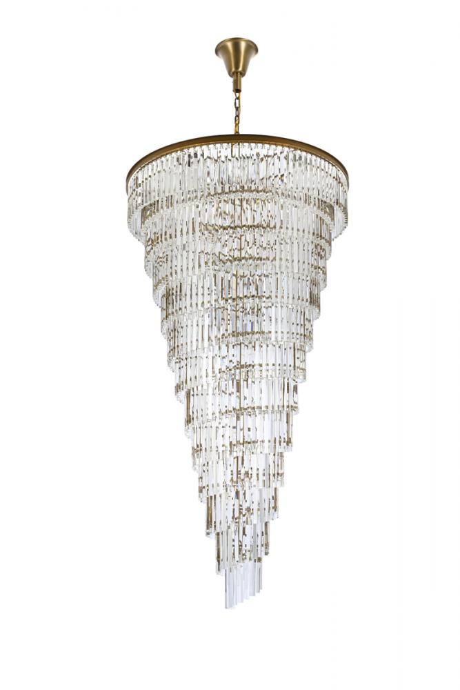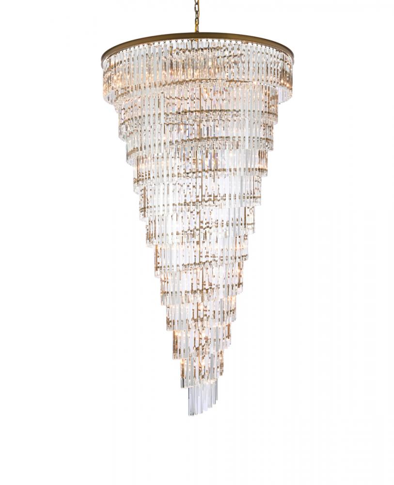 The chandelier features 10 tiers of triangular slender crystal rods, providing a stunning cascade of shimmering light and creating a sense of opulence.