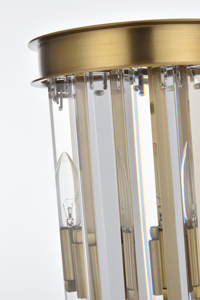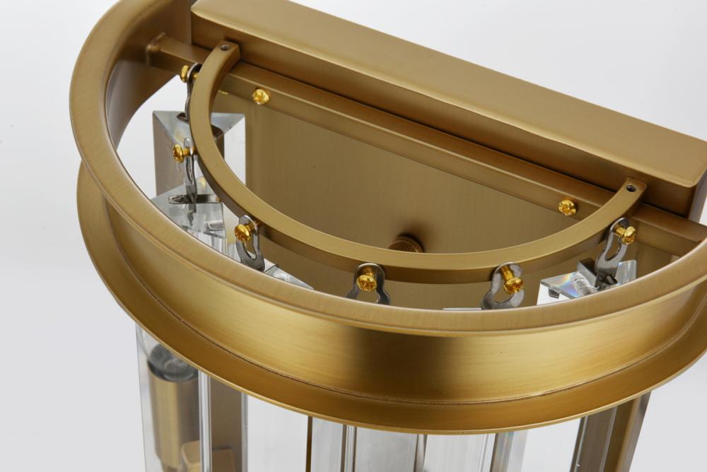 The wall sconce features a single tier of triangular slender crystal rods, providing a stunning shade of shimmering light and creating a sense of opulence. The arrangement of the crystal rods adds depth and dimension, making it a captivating centerpiece.