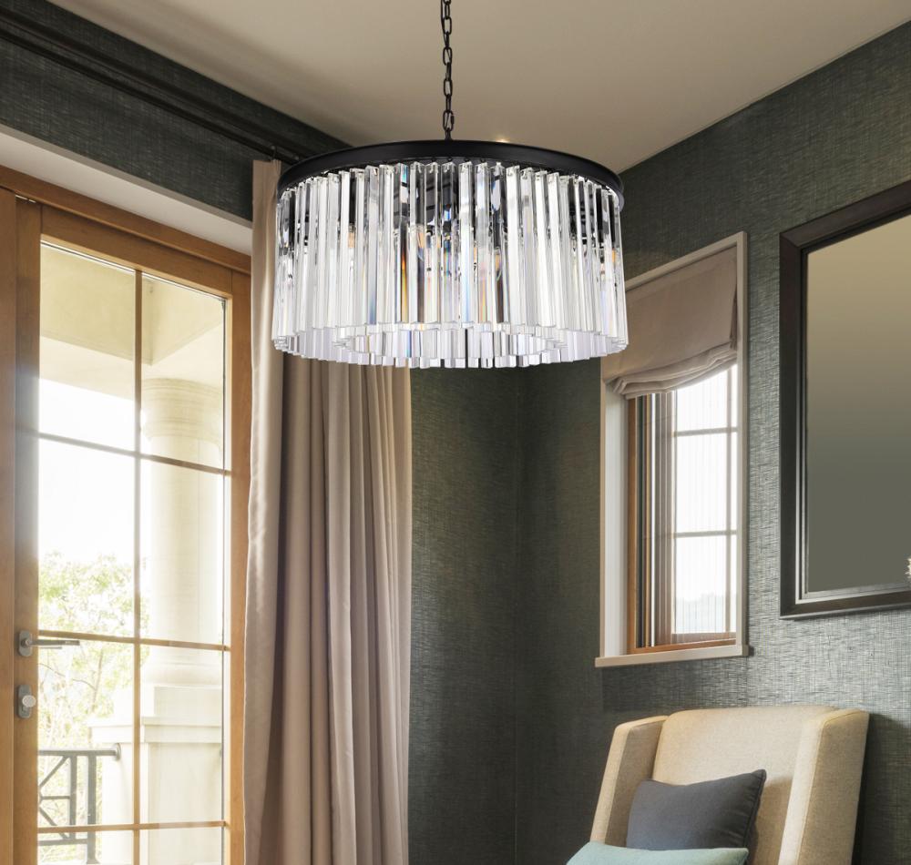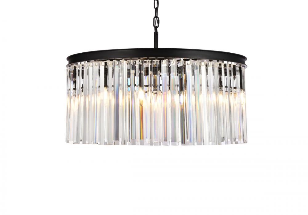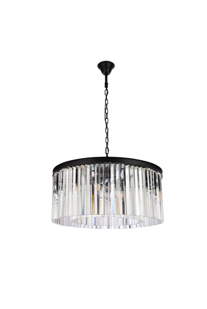 Bring the splendor of the ballroom into your home with a sparkling Sydney fixture. Stunning in foyers, dining rooms, or stairwells, the Sydney collection brings to mind the glamour of the Roaring Twenties. Features glimmering tiers of royal-cut clear, golden-teak, or Silver-shade crystals. In Matte Black or polished-nickel finishes, this sturdy, yet delicate, chandelier will be the perfect centerpiece for any décor.
