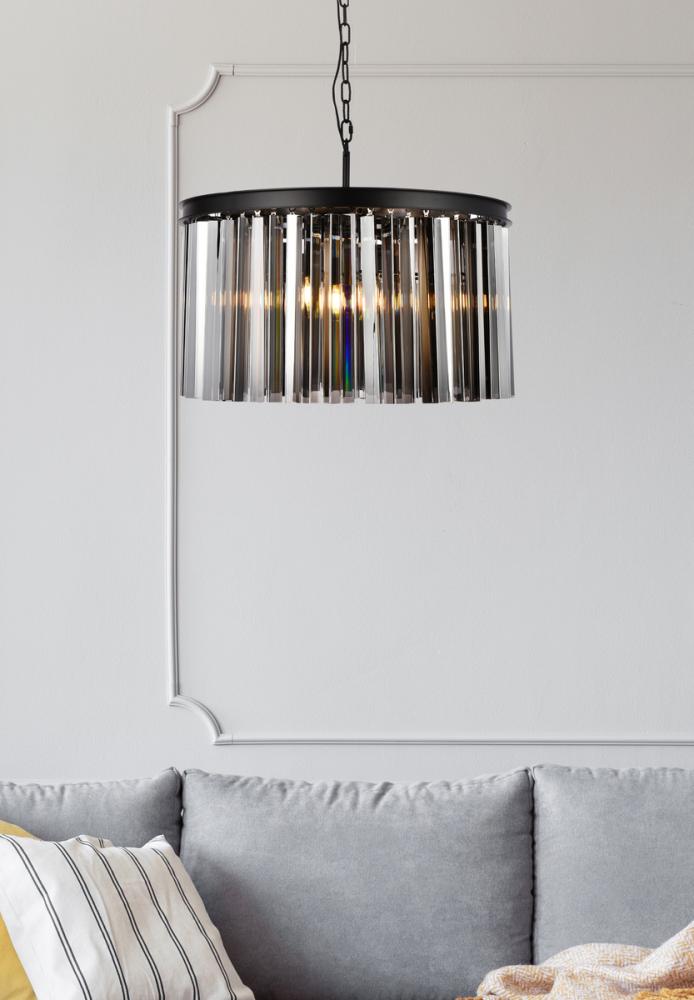 Sydney 8 light Matte Black Chandelier Silver Shade (Grey) Royal Cut Crystal