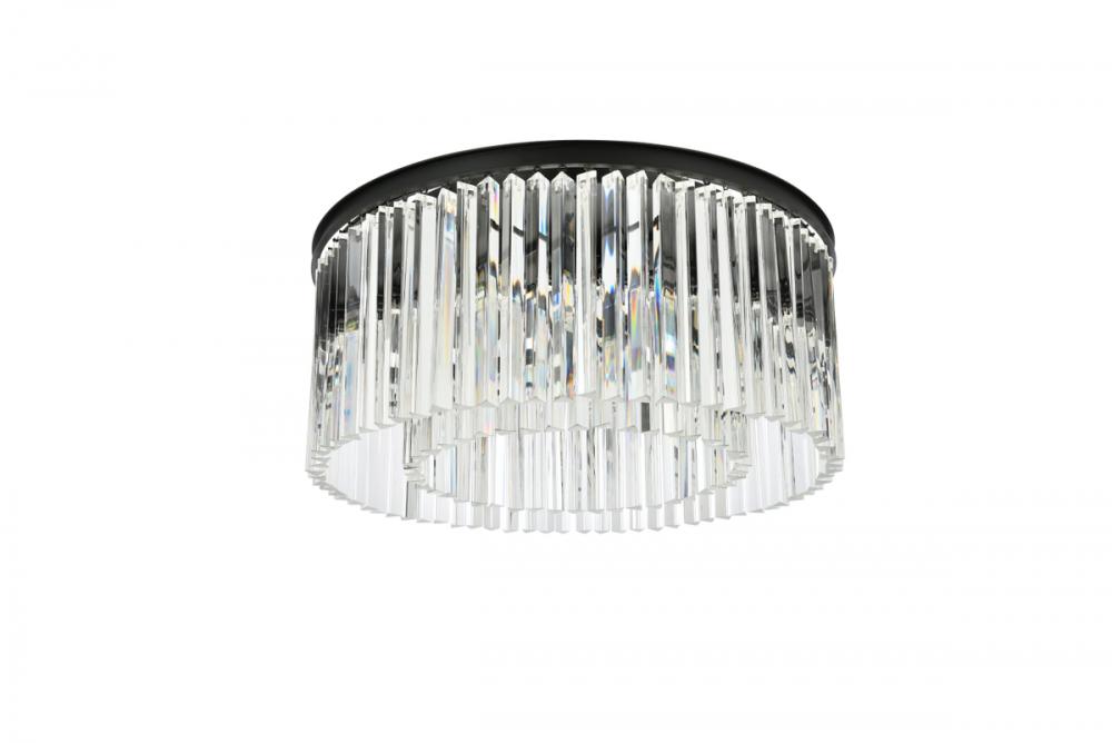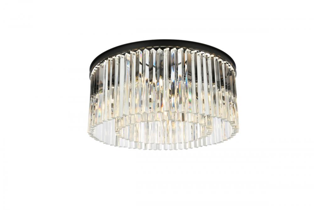 Timeless splendor and modern refinement are brought together in flush-mount Sydney fixtures. Dazzling in dining rooms, staircases, or hallways, the Sydney collection flaunts stunning tiers of royal-cut crystals in clear, golden teak, or Silver shade. A circular Matte Black or polished-nickel finished steel frame adds understated charm to this stunning flush-mount lamp.