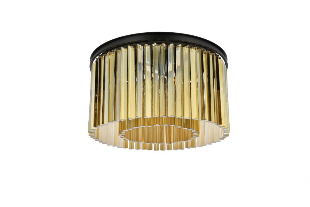 Sydney 8 light Matte Black Flush Mount Golden Teak (Smoky) Royal Cut Crystal