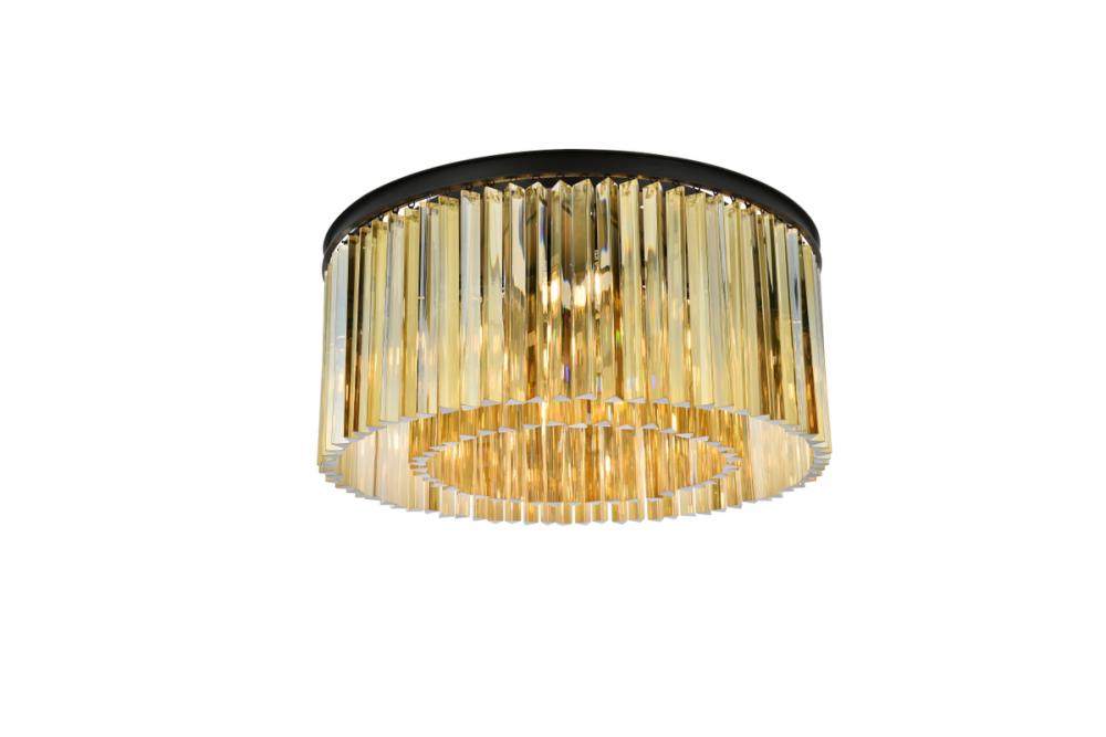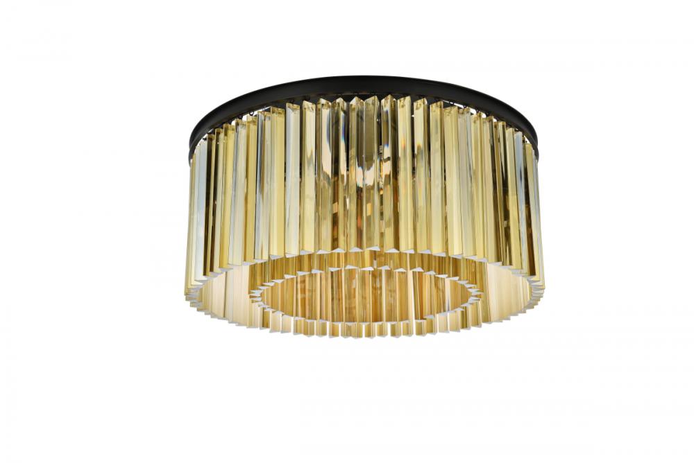Sydney 8 light Matte Black Flush Mount Golden Teak (Smoky) Royal Cut Crystal