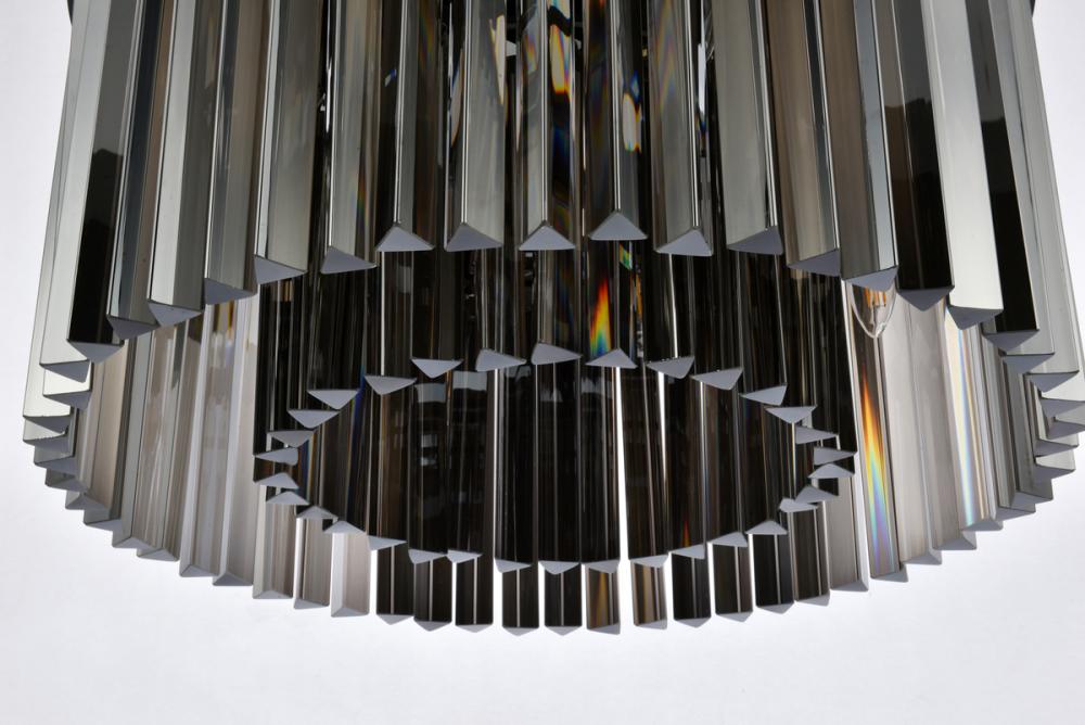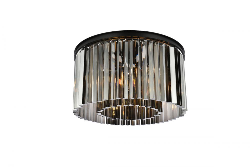 Timeless splendor and modern refinement are brought together in flush-mount Sydney fixtures. Dazzling in dining rooms, staircases, or hallways, the Sydney collection flaunts stunning tiers of royal-cut crystals in clear, golden teak, or Silver shade. A circular Matte Black or polished-nickel finished steel frame adds understated charm to this stunning flush-mount lamp.