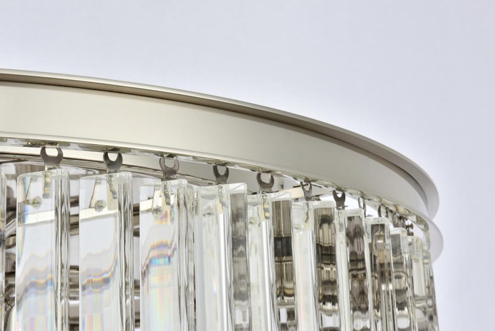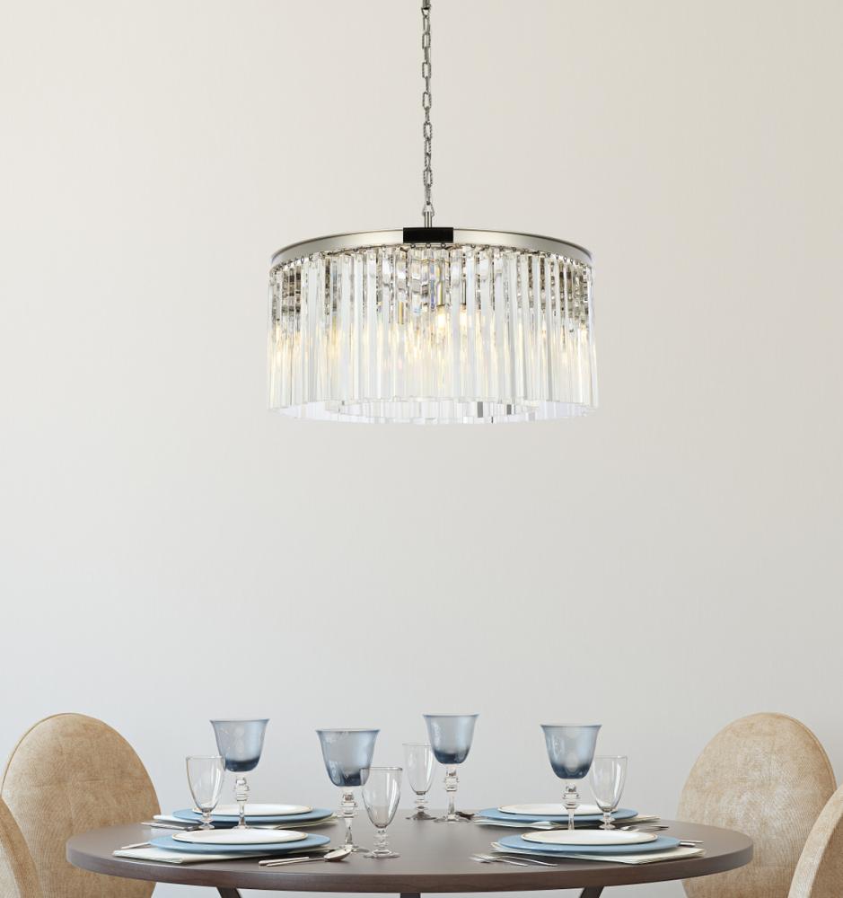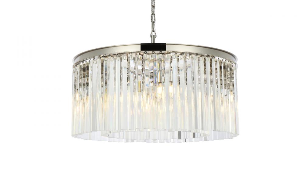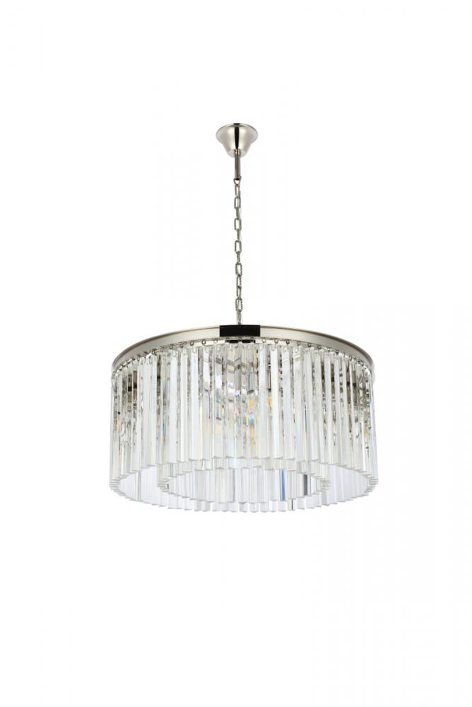 Bring the splendor of the ballroom into your home with a sparkling Sydney fixture. Stunning in foyers, dining rooms, or stairwells, the Sydney collection brings to mind the glamour of the Roaring Twenties. Features glimmering tiers of royal-cut clear, golden-teak, or Silver-shade crystals. In mocha-brown or polished-nickel finishes, this sturdy, yet delicate, chandelier will be the perfect centerpiece for any décor.