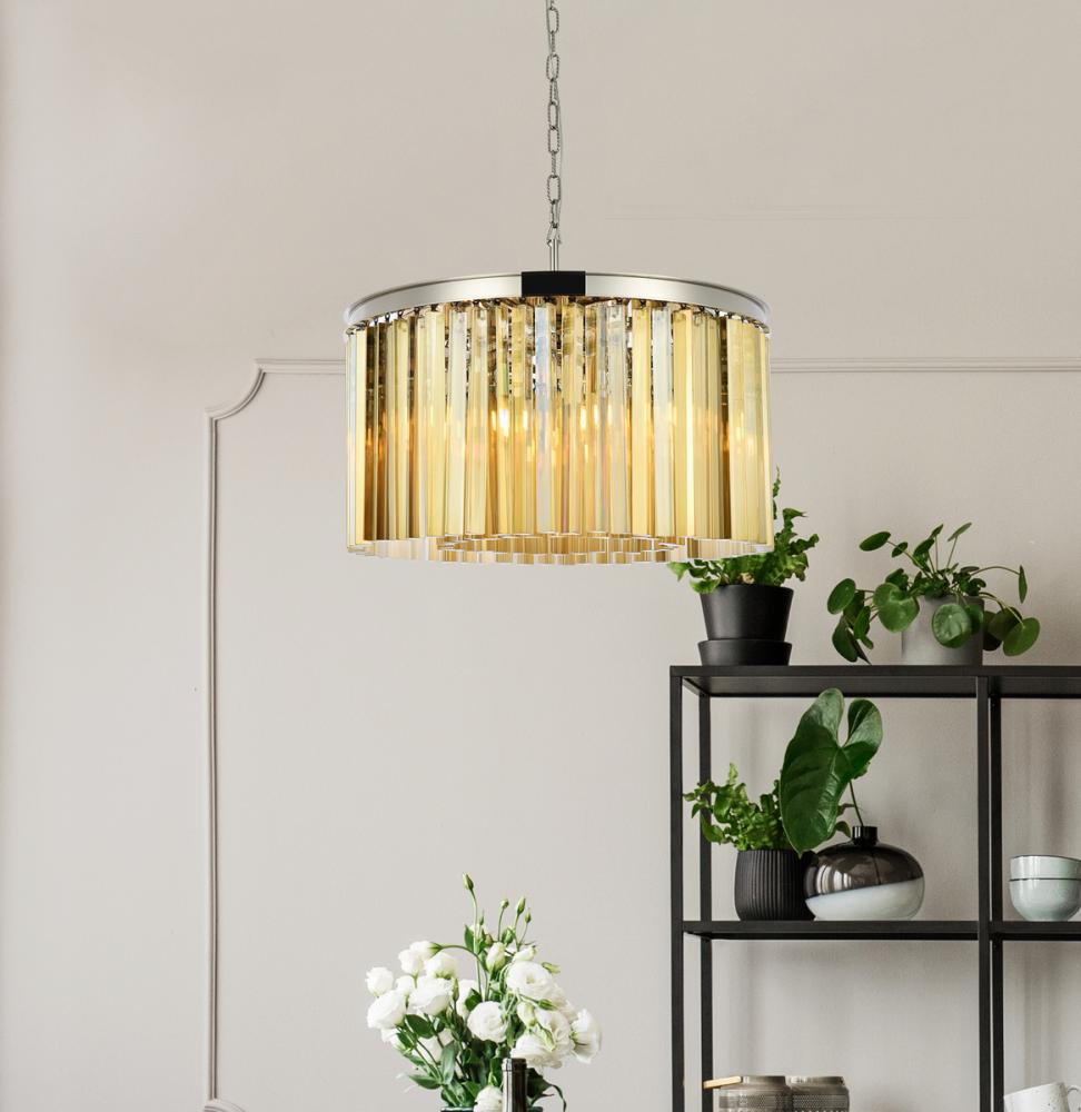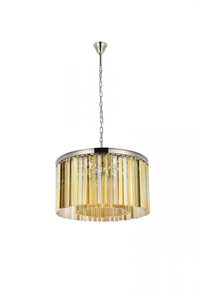 Bring the splendor of the ballroom into your home with a sparkling Sydney fixture. Stunning in foyers, dining rooms, or stairwells, the Sydney collection brings to mind the glamour of the Roaring Twenties. Features glimmering tiers of royal-cut clear, golden-teak, or Silver-shade crystals. In mocha-brown or polished-nickel finishes, this sturdy, yet delicate, chandelier will be the perfect centerpiece for any décor.