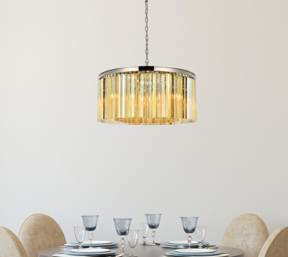Bring the splendor of the ballroom into your home with a sparkling Sydney fixture. Stunning in foyers, dining rooms, or stairwells, the Sydney collection brings to mind the glamour of the Roaring Twenties. Features glimmering tiers of royal-cut clear, golden-teak, or Silver-shade crystals. In mocha-brown or polished-nickel finishes, this sturdy, yet delicate, chandelier will be the perfect centerpiece for any décor.