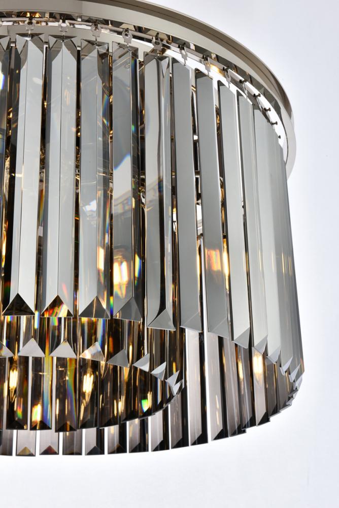Bring the splendor of the ballroom into your home with a sparkling Sydney fixture. Stunning in foyers, dining rooms, or stairwells, the Sydney collection brings to mind the glamour of the Roaring Twenties. Features glimmering tiers of royal-cut clear, golden-teak, or Silver-shade crystals. In mocha-brown or polished-nickel finishes, this sturdy, yet delicate, chandelier will be the perfect centerpiece for any décor.