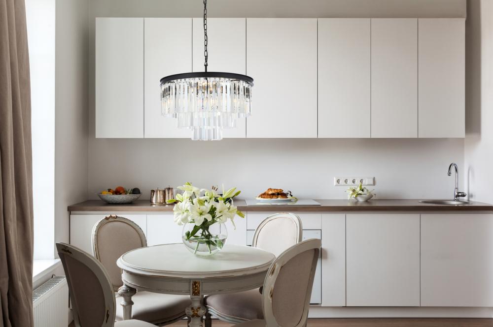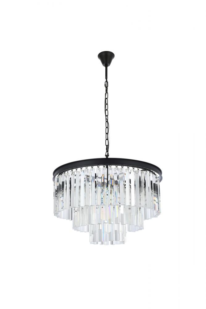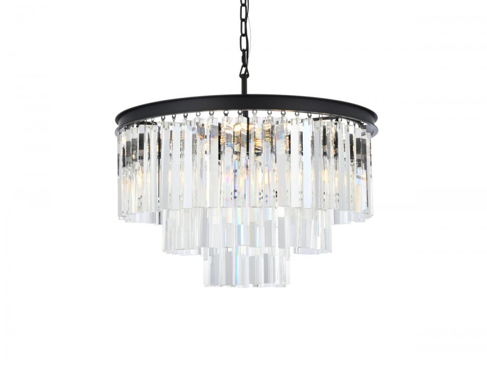 Bring the splendor of the ballroom into your home with a sparkling Sydney fixture. Stunning in foyers, dining rooms, or stairwells, the Sydney collection brings to mind the glamour of the Roaring Twenties. Features glimmering tiers of royal-cut clear, golden-teak, or Silver-shade crystals. In Matte Black or polished-nickel finishes, this sturdy, yet delicate, chandelier will be the perfect centerpiece for any décor.