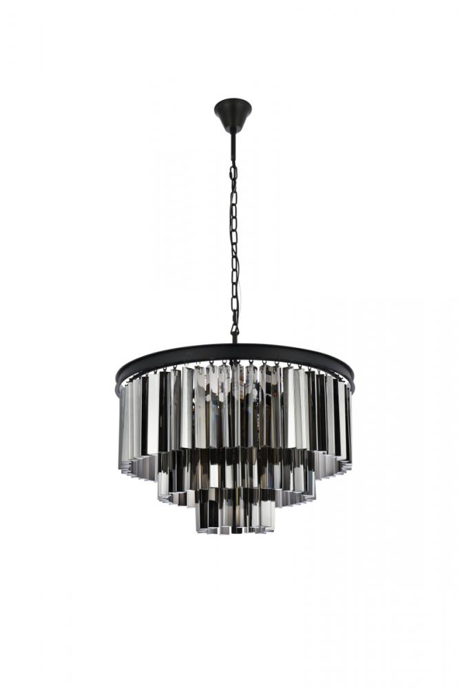 Sydney 9 light Matte Black Chandelier Silver Shade (Grey) Royal Cut Crystal